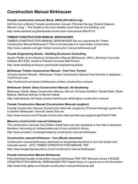 [UniqueID] - Read Online MASONRY CONSTRUCTION MANUAL BIRKHAUSER Epub